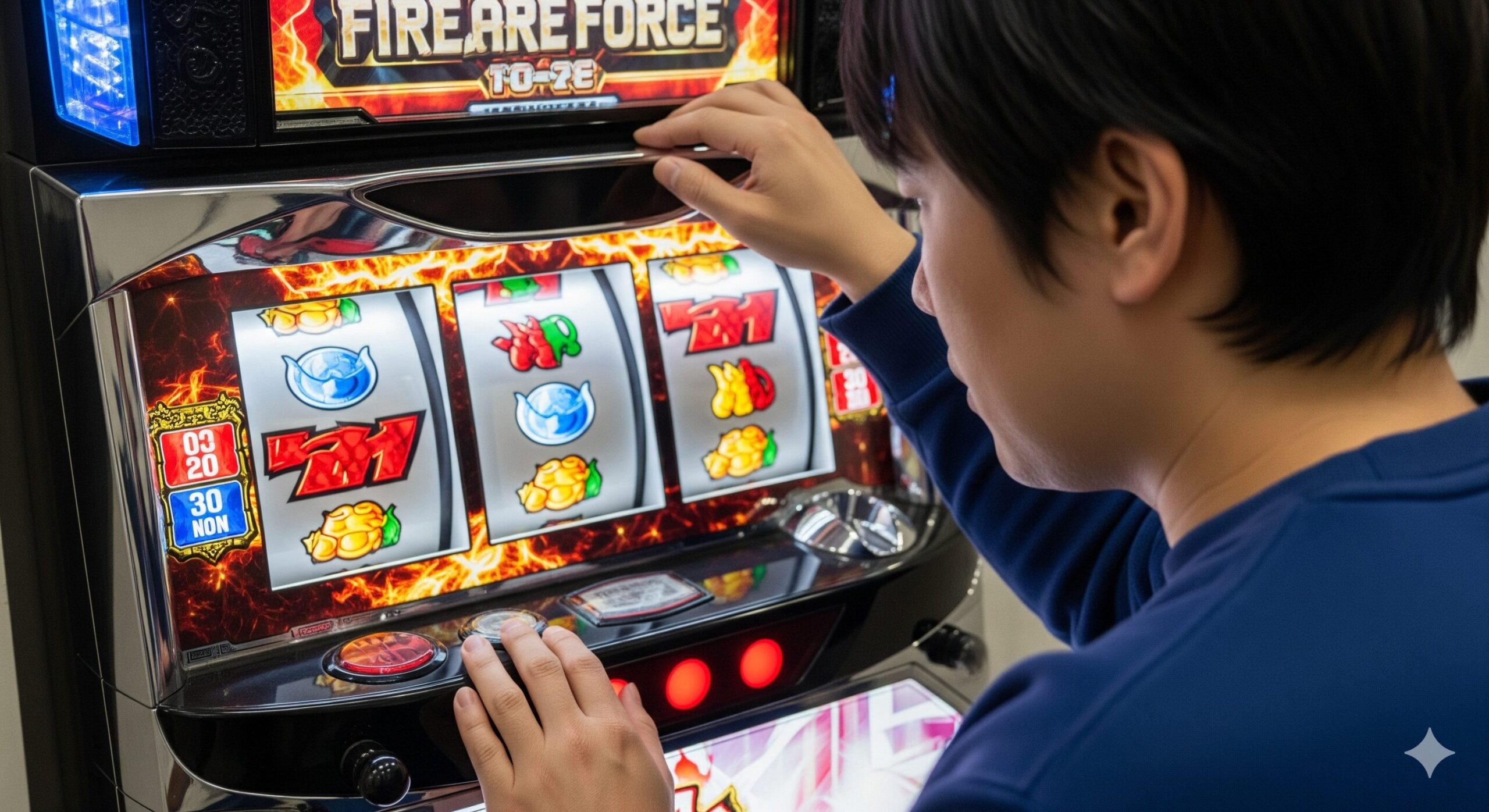 ここで最も重要なポイントは、AT「炎炎激闘」の仕様です。このATは1セット15G+α継続しますが、それ自体にメダルを増やす能力はほとんどありません。本当の役割は「ボーナスを高確率で抽選する特殊区間」であることです。炎炎激闘中にボーナスを引くことで出玉を増やし、さらに炎炎激闘への再突入を目指す…このループこそが本機の醍醐味であり、やめどきを複雑に、そして面白くしている要因です。