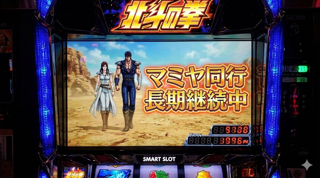 北斗の拳のスマスロを打っていて、ふと「あれ、マミヤの同行がいつもより長い気がする」と感じたことはありませんか。