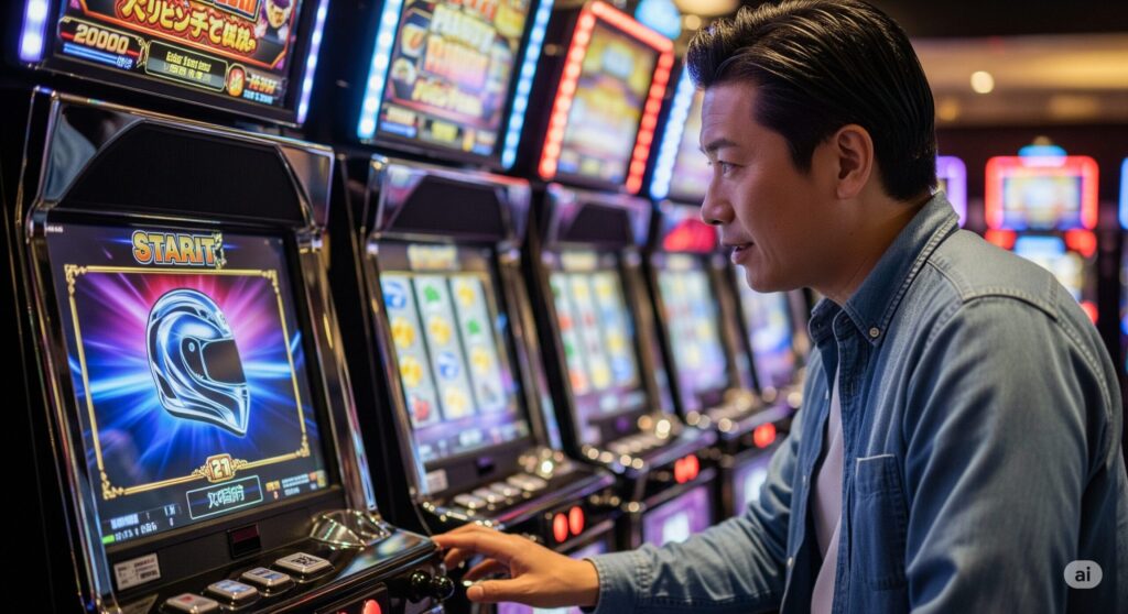 前述の通り、開始画面のヘルメットロゴやキャラクターによって、選択されているシナリオがある程度示唆されます。例えば、ロゴ付きのヘルメットであれば継続率が優遇されるシナリオの可能性が高まるなど、目に見える形でチャンスが示されるのが本作の面白いところです。シナリオの知識を深めることが、ATを最大限楽しむための第一歩と言えるでしょう。