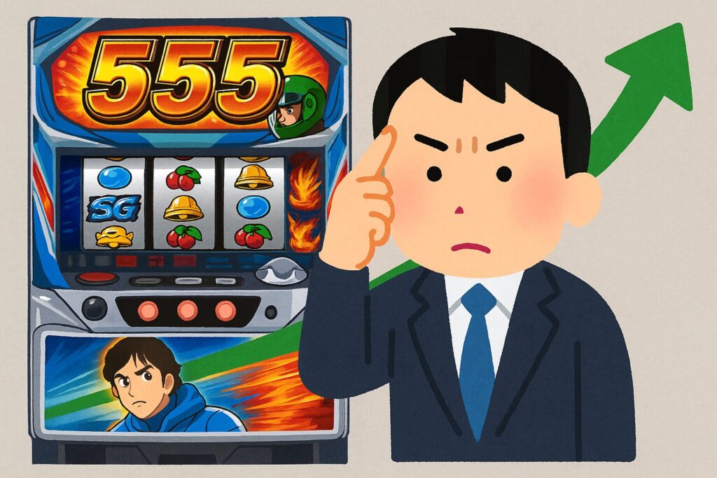 設定差は大きくないものの、高設定ほど555ポイントで優出に入りやすい傾向が確認されています。山佐ネクスト営業資料による抽選テーブルは非公開ですが、業界誌「グリーンべると」が2025年2月号で掲載した試射データでは、設定6の555優出突入率が12.1%、設定1が7.9%と約1.5倍の差があります(参照:グリーンべると)。