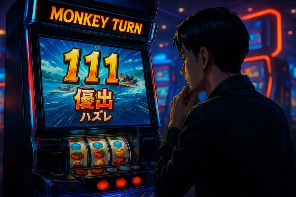 モンキーターンⅤのスマートスロット(スマスロ)で、突如訪れる「モンキーターンのスマスロで111優出が外れ」という状況は、初見の方には衝撃的かもしれません。この記事では、AT後の「4の即優出がハズレ」や、そもそも選択率に違いがある「4の即優出モード」と「即優出に設定差」の考え方、さらにステップアップ演出で注目したい「5の優出モード赤がハズレ」など、実践で押さえるべきポイントを解説します。